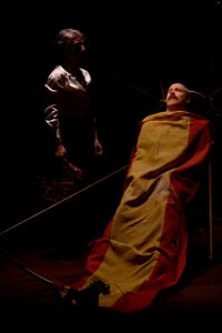 En este montaje nos propusimos abordar diferentes piezas relacionadas con la memoria histórica. Dada la complejidad y características de esta temática y el material en bruto que había, trabajamos sobre tres piezas que estaban conectadas. Durante la post-guerra civil uno de los bandos masacró sistemáticamente al otro. Esta manera de fagocitar al adversario no fue suficiente. También se dedicó a erradicar cualquier pensamiento, acción o sentimiento contrario a las órdenes del dictador. Así, miles de españoles sin una ideología contraria fueron exterminados. Sus hijos fueron puestos a buen recaudo en familias del bando ganador. Vista la cantidad de huérfanos que las numerosas familias dejaban, abrieron una línea de “negocio”. Robar niños y venderlos a familias pudientes. Cuando la memoria intentó hacerse hueco de estas barbaries una gran oleada de subversión se vio violentamente coartada por el estado de “derecho”.